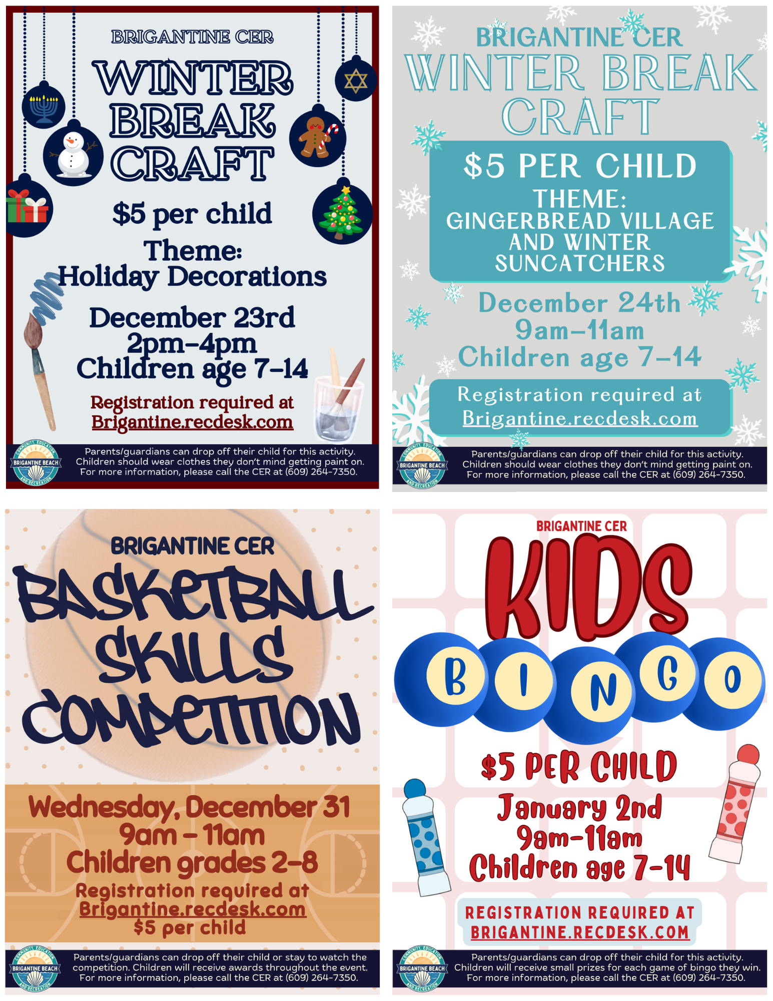 Registration for all CER programs is through our registration website: brigantine.recdesk.com. To register, please log into RecDesk or stop by the CER. Anyone looking to pay with a check will be required to come to the CER to register in-person. We do not accept cash or registrations over the phone. If you or someone you know does not have a device with internet access, the CER is able to register people in-person. The CER has also provided instructional training to the Brigantine Library and its staff, so they are available to help anyone looking to register using a library computer. All questions about the online registration process can be directed to the CER by calling (609) 264-7350.
