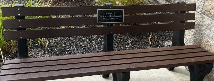 Memorial plaques will measure approximately 3” by 10” and will consist of three lines of text. The headline will read “In Memory of” or “In Honor of” based on the donor’s choosing. The second and third lines can have a maximum of 25 characters each, including spaces or punctuation. Typically, the second line is the name of the person being honored and the third line is text expressing love or longing. Sample: